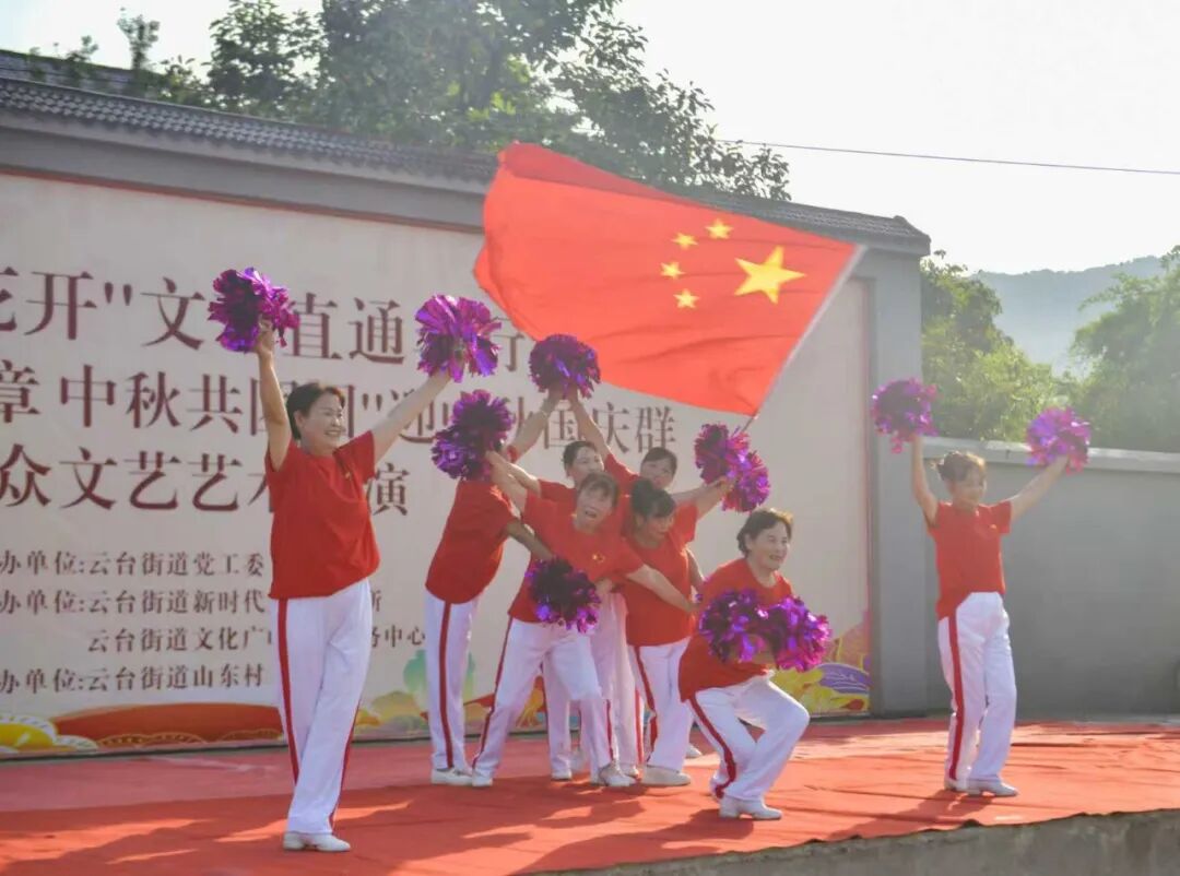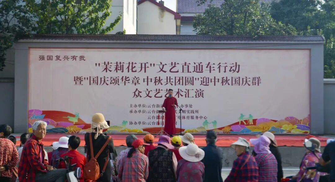金秋送爽,丹桂飘香。为进一步丰富辖区居民精神文化生活,凝聚“强国复兴有我”的磅礴奋进力量,近日,“茉莉花开”文艺直通车行动暨“国庆颂华章中秋共团圆”迎中秋国庆群众文艺汇演,在云台街道山东村党群服务中心广场热闹启幕。