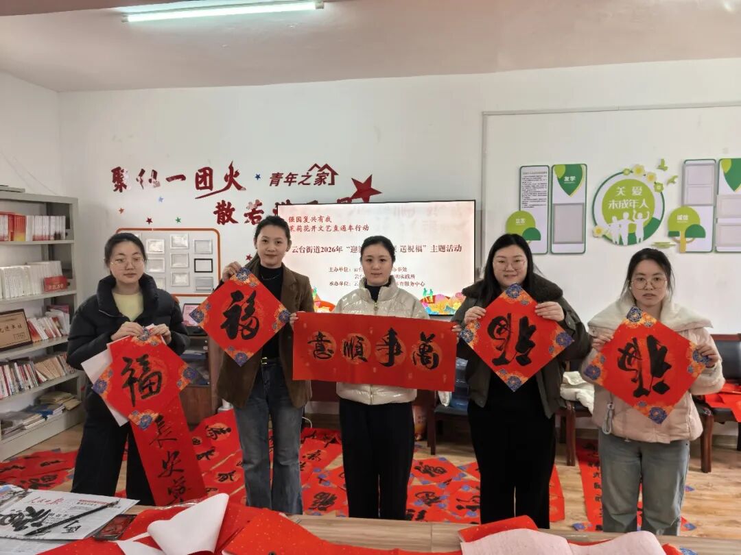 年味在笔墨间愈显浓郁,祝福在红纸上更添温情。为弘扬中华优秀传统文化,营造喜庆祥和的新春氛围,把温暖与关怀送到群众身边,2月6日,云台街道组织开展2026年“迎新春 写春联 送祝福”主题活动。活动邀请书法爱好者现场挥毫,书写春联百余幅赠予村民,让火红的春联成为传递祝福、凝聚情谊的桥梁,为即将到来的春节增添浓厚的文化气息。