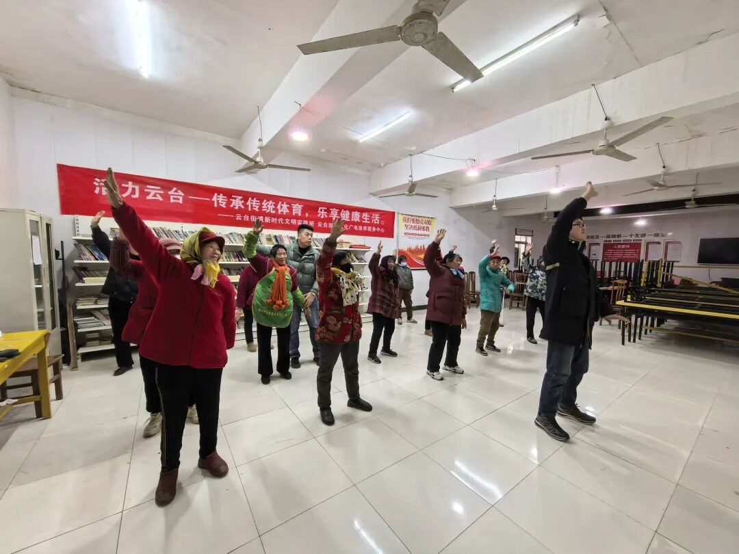 在“活力云台”文明实践活动现场,现场气氛热烈。街道将八段锦和太极拳等传统体育项目送到村民家门口,由街道文体中心二级社会体育指导员进行现场教学。指导员们将复杂动作拆解成简单单元,手把手指导,确保村民能跟上、能学会。