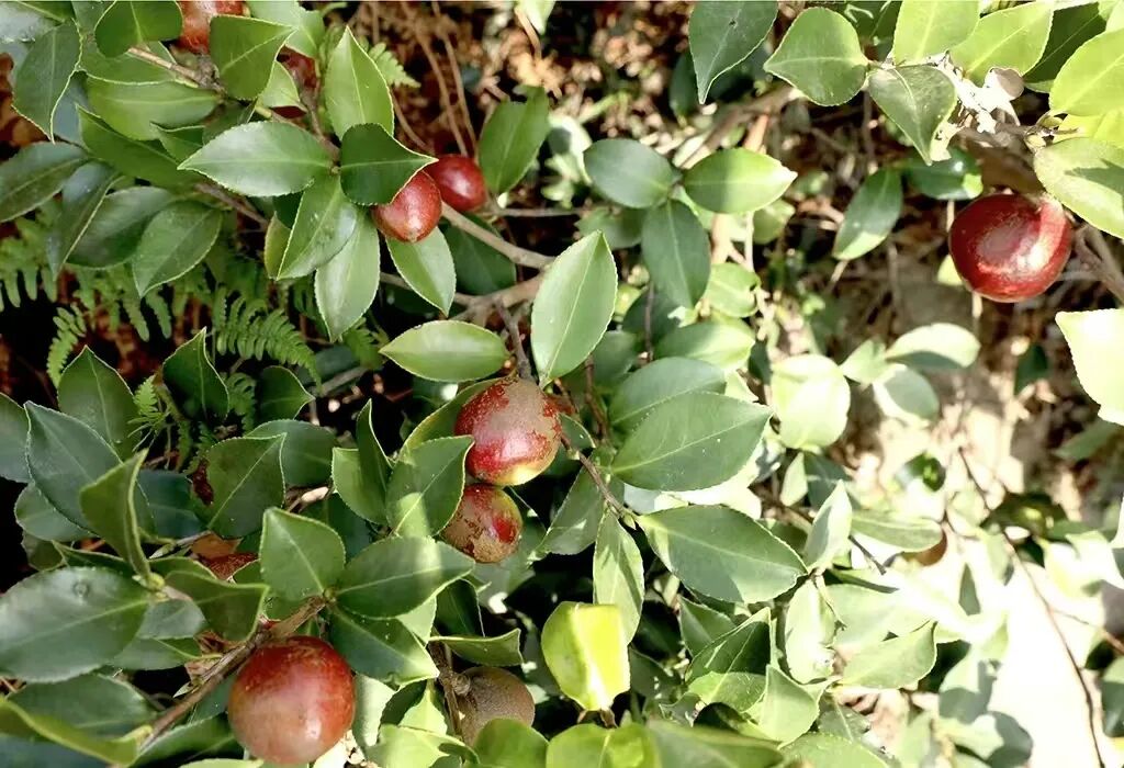 不远处,满山的油茶果挂满枝头,长势喜人,丰收的图景同样令人振奋。近年来,景区依托得天独厚的自然资源,大力发展林下经济产业,通过人工抚育,大片的野生山茶已长大成林,结出的果实也为景区创造出良好的经济效益。“我们先后在东磊分场和凌州分场分别打造了2000余亩油茶基地,今年油茶果长势良好,预计在月底就能采摘。”南云台林场孔雀湖茶场总经理王习国说。