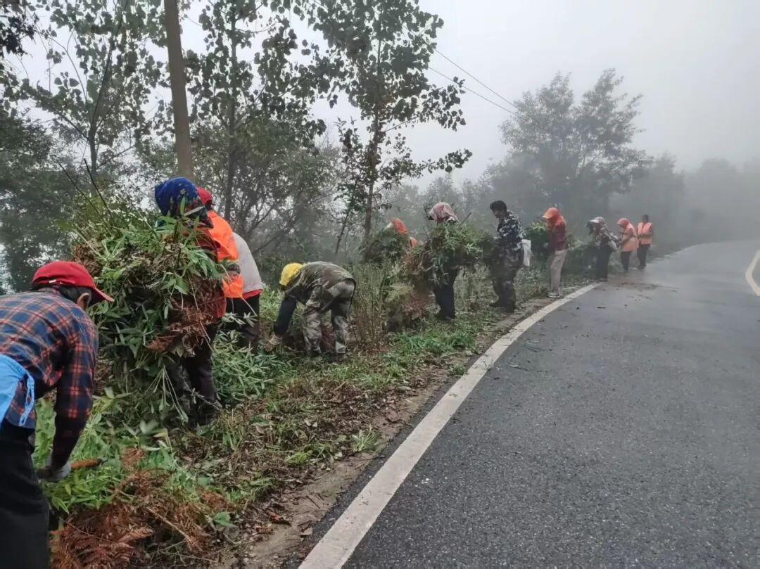 在唐僧路、悟空大道、八戒路等地,工人们手执镰刀、油锯等工具,有条不紊地清理着道路两侧林间的杂灌,并将杂枝集中运出,现场一片繁忙景象。据现场负责人李顺刚介绍,工人们每日可抚育林地百余亩,虽然工作辛苦,但为了清除火灾隐患,保障秋冬防火安全,大家都干劲十足。