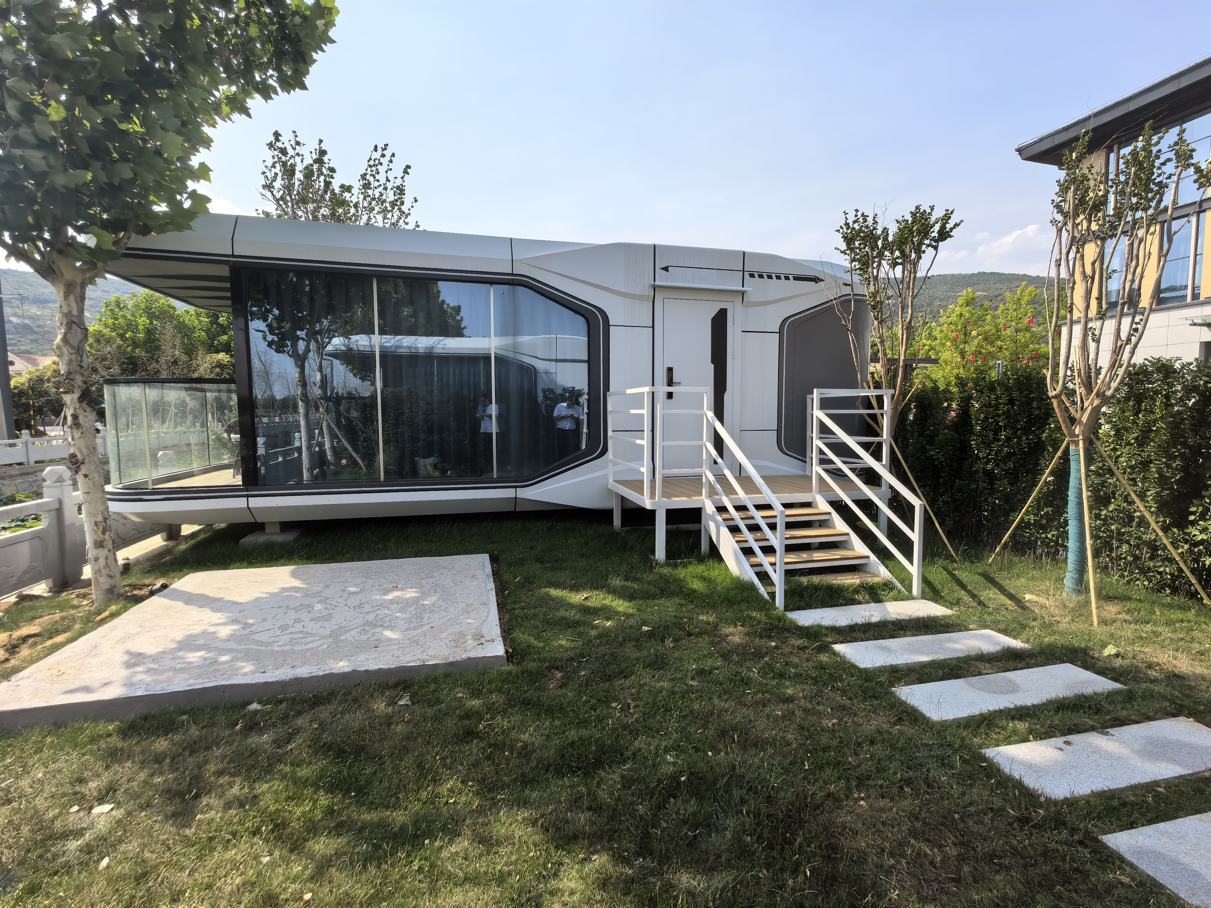 在渔湾欢乐城灵龙居主题度假酒店西侧,全新打造的“星空氧舱”已惊艳亮相。这些极具未来感的建筑群以流线型太空舱为造型,采用灰白主色调,简约而富有科技感的线条设计格外吸睛。