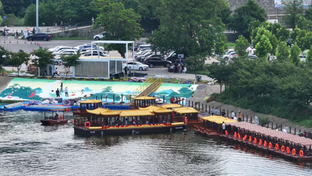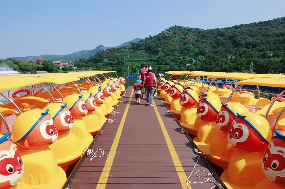 在大圣湖畔的水上乐园,游客们在碧波荡漾的湖中泛舟,孩子们在水上城堡肆意玩耍……“五一”假期中,花果山景区水上乐园也迎来了不少游客,一艘艘“西游”元素满满的小船和画舫穿梭在波光粼粼的湖面,犹如一条条白色的鱼儿在水面上跳跃随。大家在登山之余泛舟湖面,享受那份难得的宁静与放松,不时传来阵阵欢声笑语,大家纷纷掏出手机,定格下这美好的一刻。