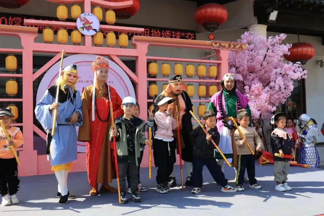 “五一”假期首日,花果山景区喜迎八方来客,全国各地的游客纷至沓来,共赴一场精彩的“西游之旅”。早晨8点不到,花果山景区入口处就已经排起了长长的队伍,大家在志愿者的引领下有序进园。在游客中心的西游小剧场,挤满了围观的人群,现场人头攒动,热闹非凡。“女儿国王招婿”“西游萌宠大闹天宫”等沉浸式表演给游客带来互动新体验,游客争相与“孙悟空”“猪八戒”合影,并纷纷拿出手机与“西游人物”精彩互动,现场氛围热烈。