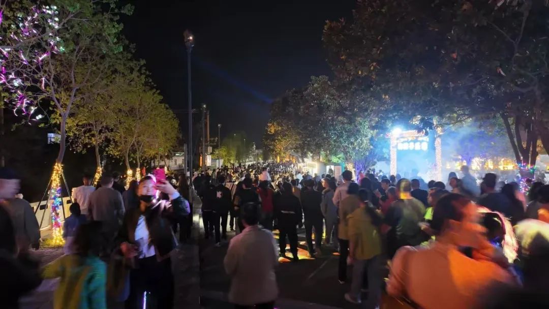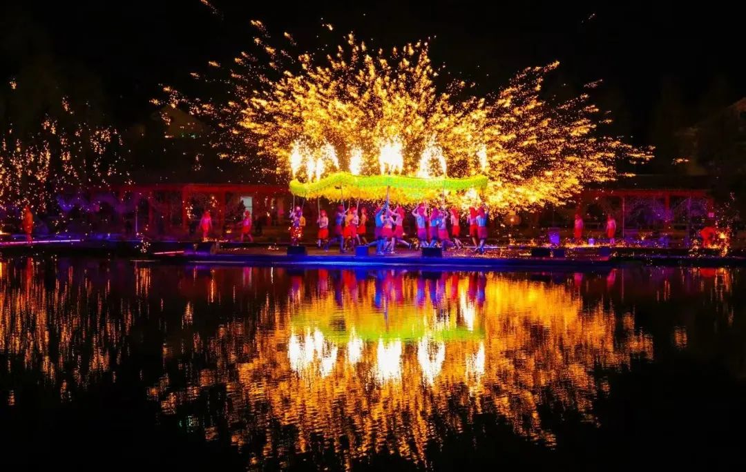 当夜幕降临,渔湾景区入口处,崭新靓丽的“鱼跃龙门”“渔湾风情”等20余组宋风主题灯组点亮,“神鱼舞河”灯影摇曳,“龙凤呈祥”凌空展翅,宋式美学的雅致与神话传说的奇幻在此交融,游客举目皆景、步步入画。