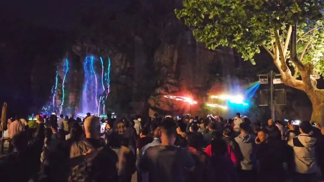 宋韵美学为夜游增添雅致。水幕激光秀《凤起渔湾》以百米水帘为画布,牡丹盛放、孔雀开屏的光影幻境引得游客驻足惊叹。“白天遛娃戏水,晚上看火龙追极光,这才是假期该有的样子!”许媛媛一家道出心声。景区创新“白+黑”模式:游客日间可溯溪嬉水、体验超长滑梯;入夜后国潮快闪、歌舞演艺接连登场,填补传统山水景区夜游空白。