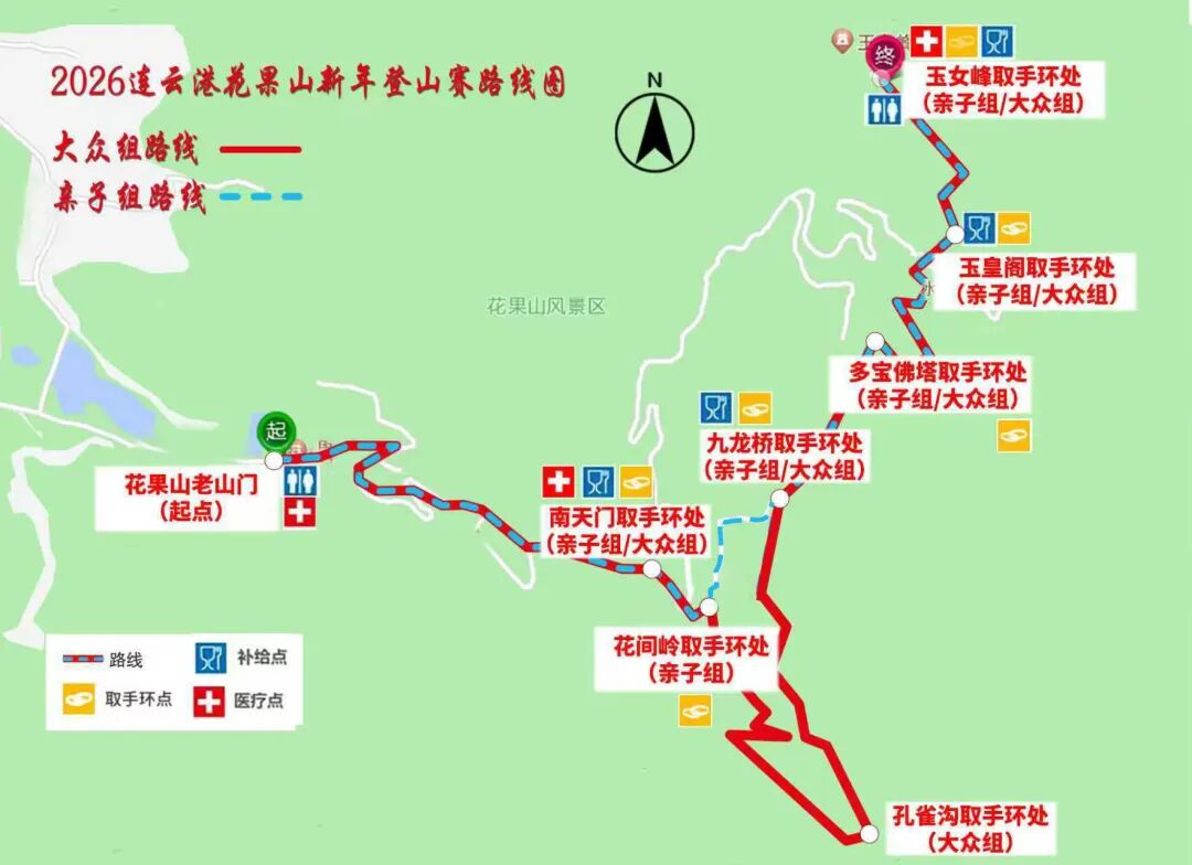 这不仅仅是一场比赛,更是一场穿越“西游秘境”的沉浸式冒险。赛事精心设置了两条路线:“大圣组”(全程约7.5KM)和“西游组”(全程约5.5KM),均从花果山山门广场出发,途经十八盘、南天门、水帘洞等不同经典景点,最终共同登顶江苏之巅——海拔624.4米的玉女峰。