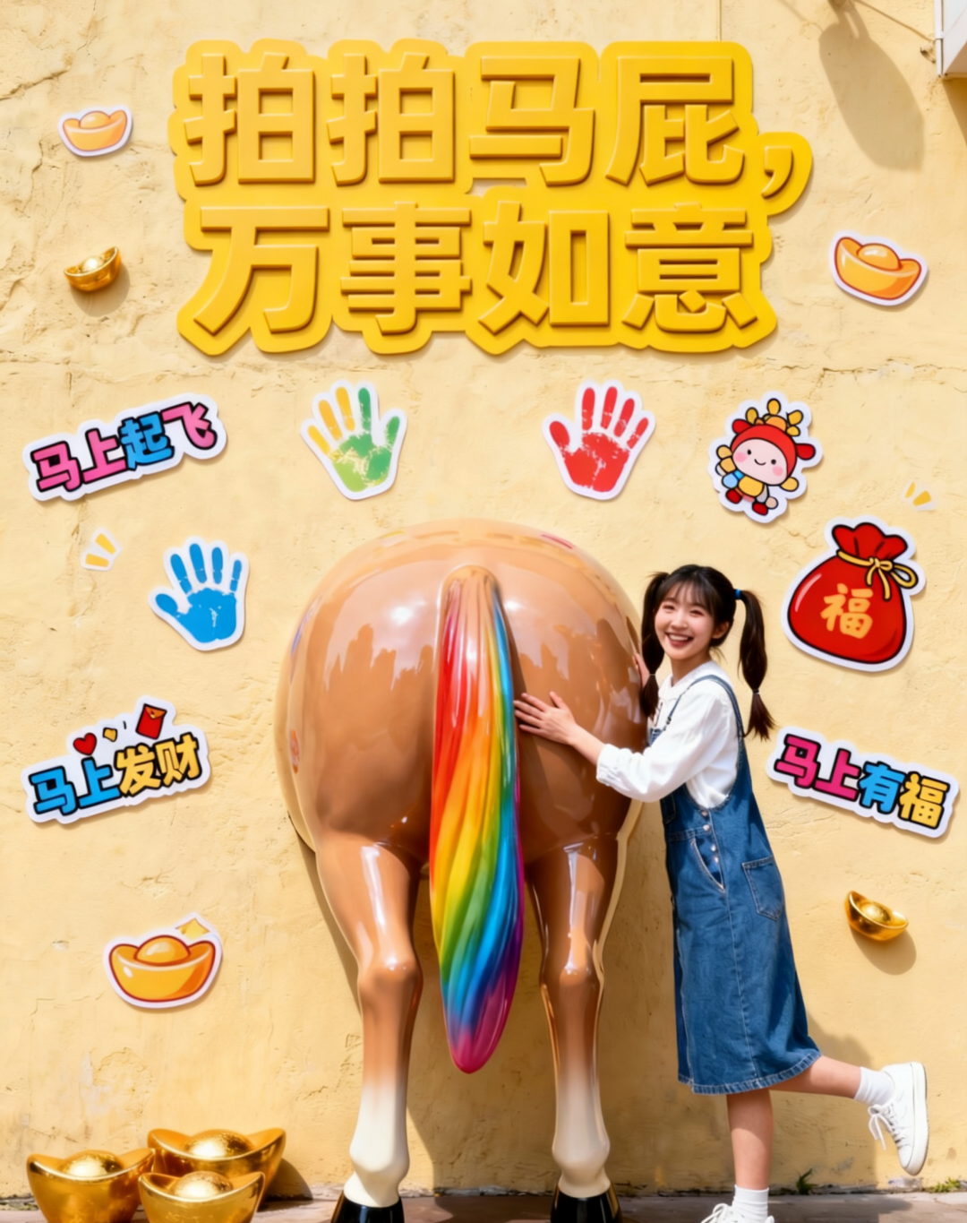 渔湾即将换上“新年盛装”,喜庆氛围扑面而来,“马年拍马屁”趣味美陈打卡点萌趣上线啦。憨态可掬的马年元素搭配吉祥标语,随手一拍都是氛围感大片,发圈绝对点赞爆棚。