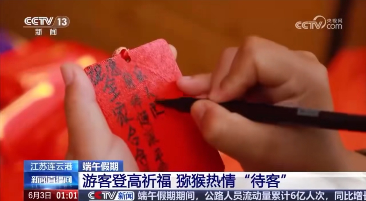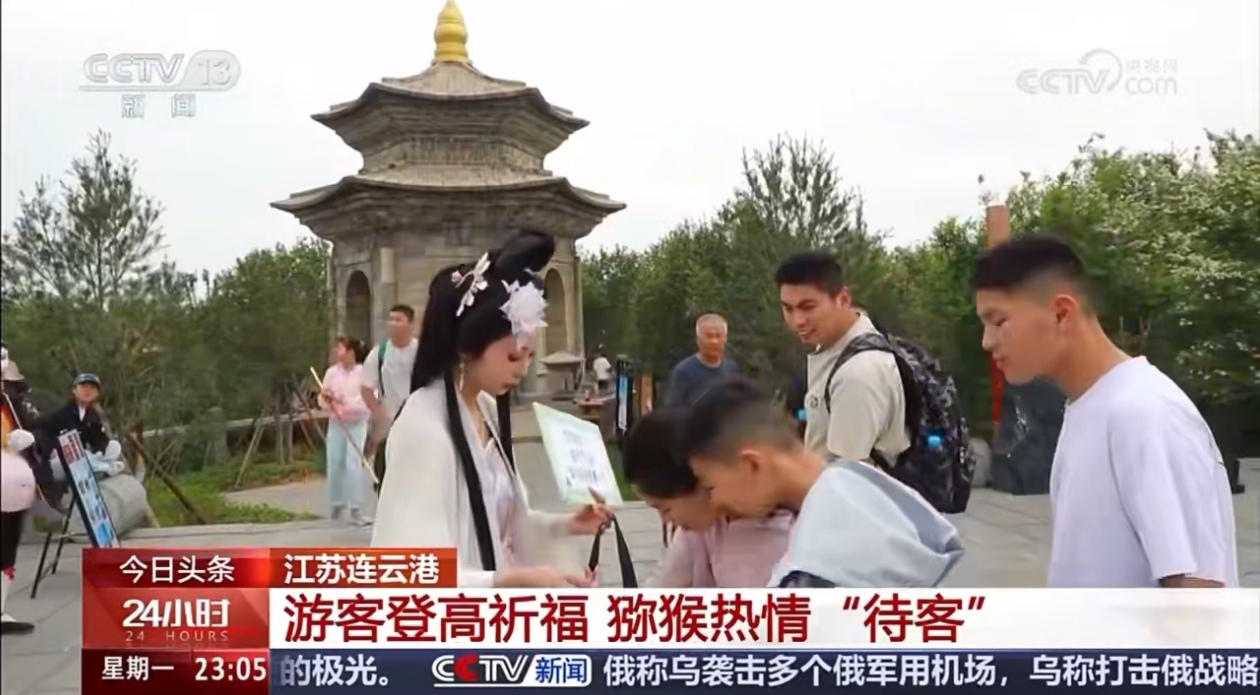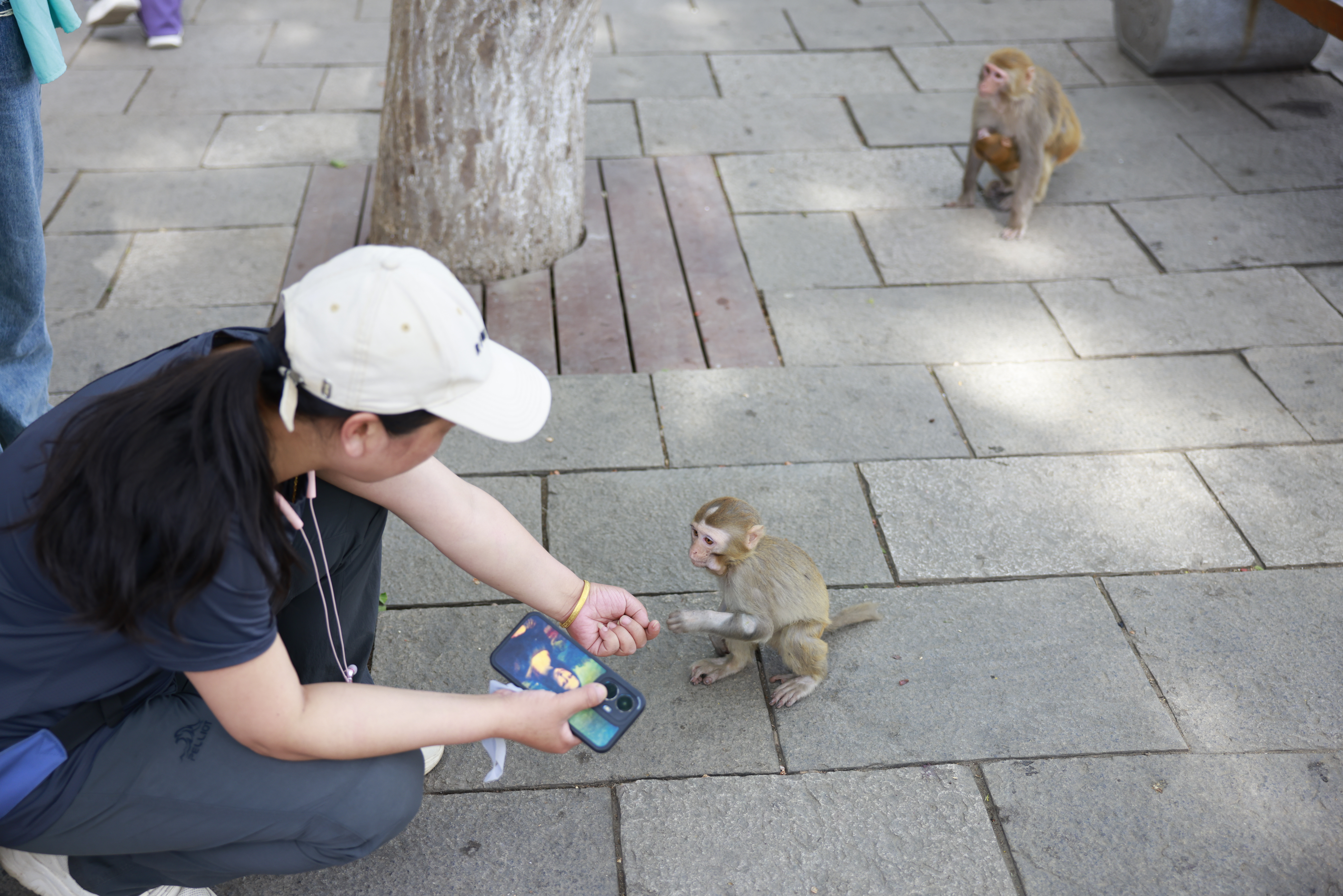 刊播“游客登高祈福 猕猴热情‘待客’”