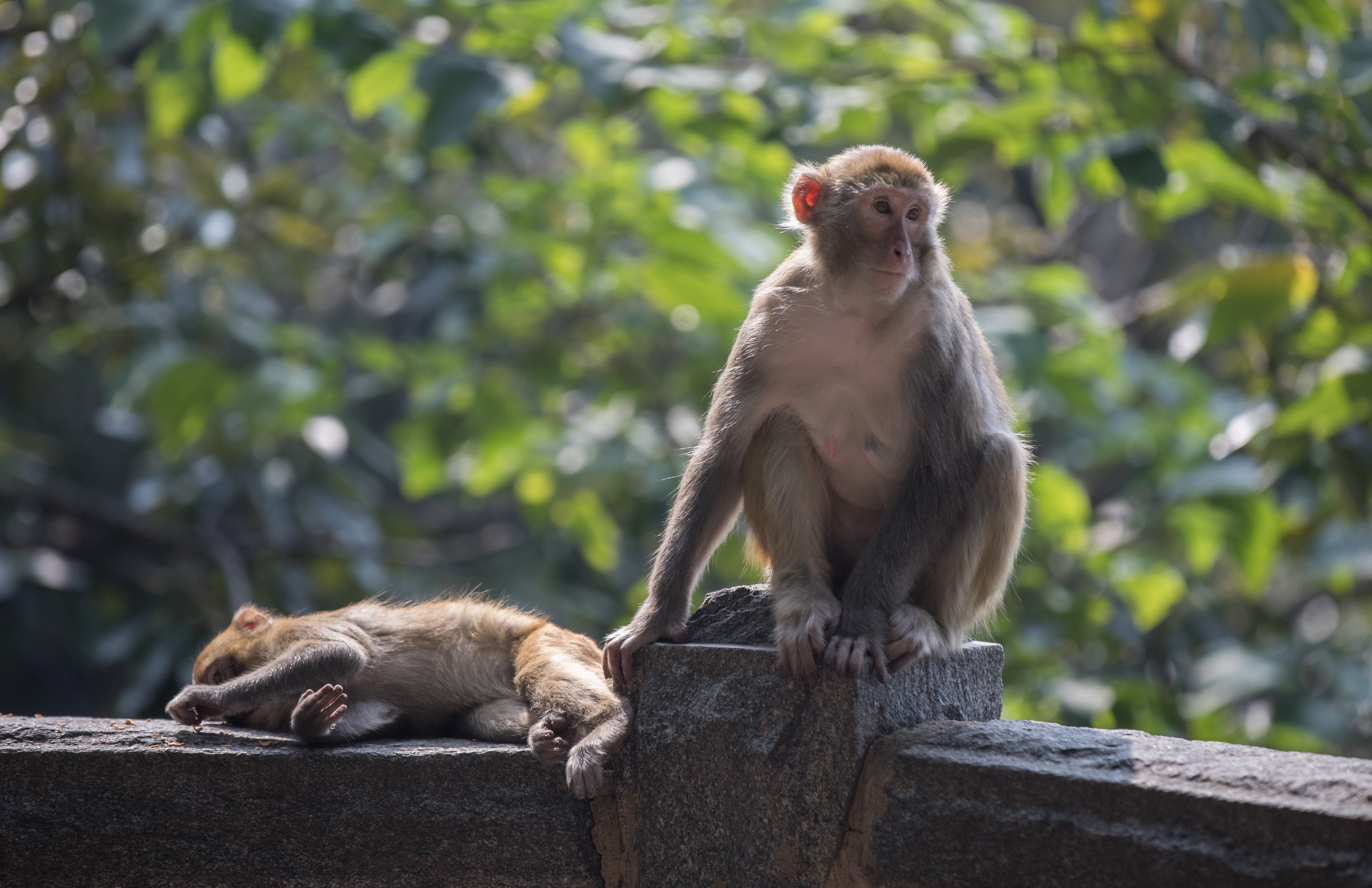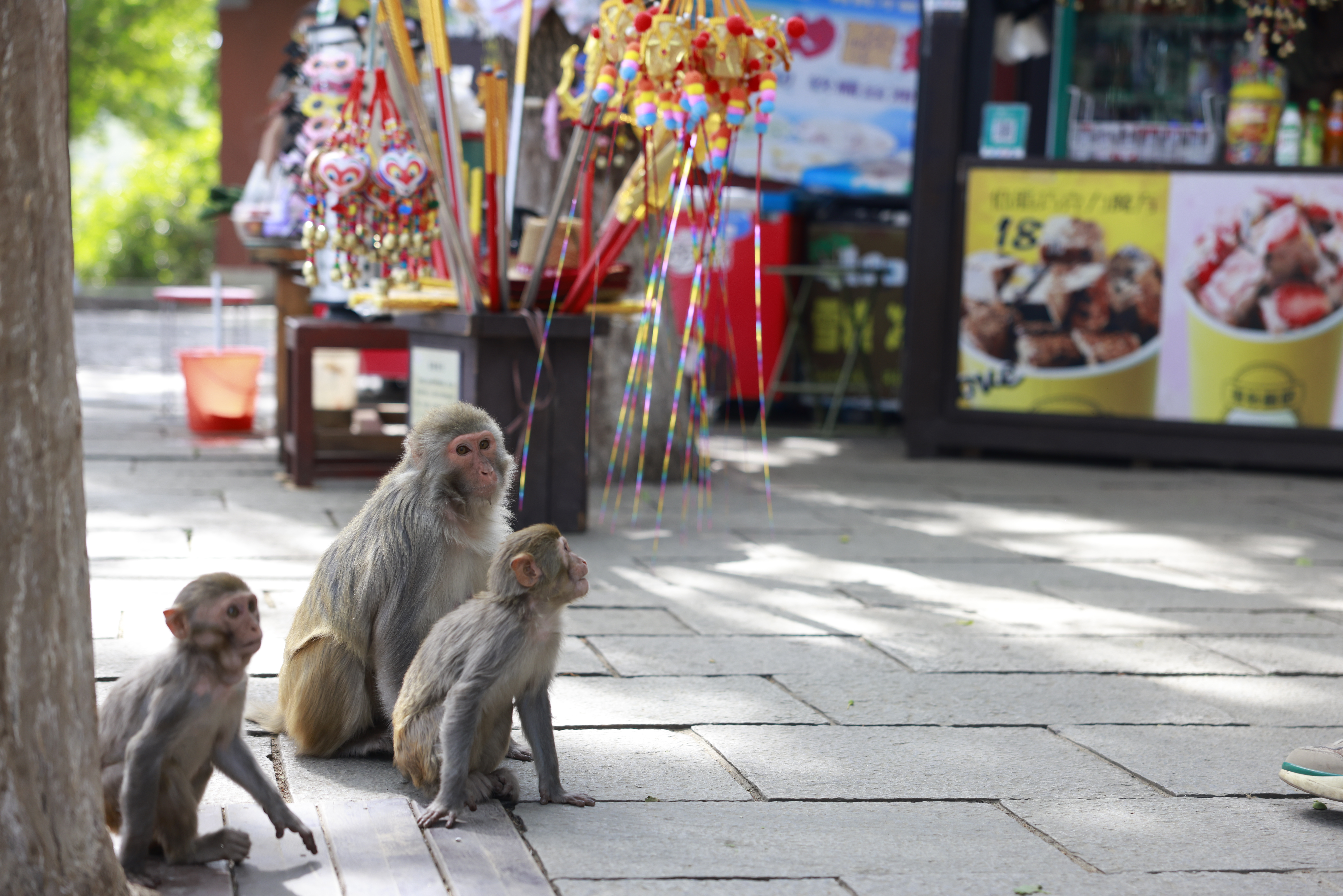 景区内,成群结队的猕猴在山间肆意玩耍,或攀援树枝表演“猴子捞月”,或向游客睁大双眼“卖萌”讨食,动作千姿百态,哼哼唧唧地叫个不停,憨态可掬的模样引得游人纷纷拍照。