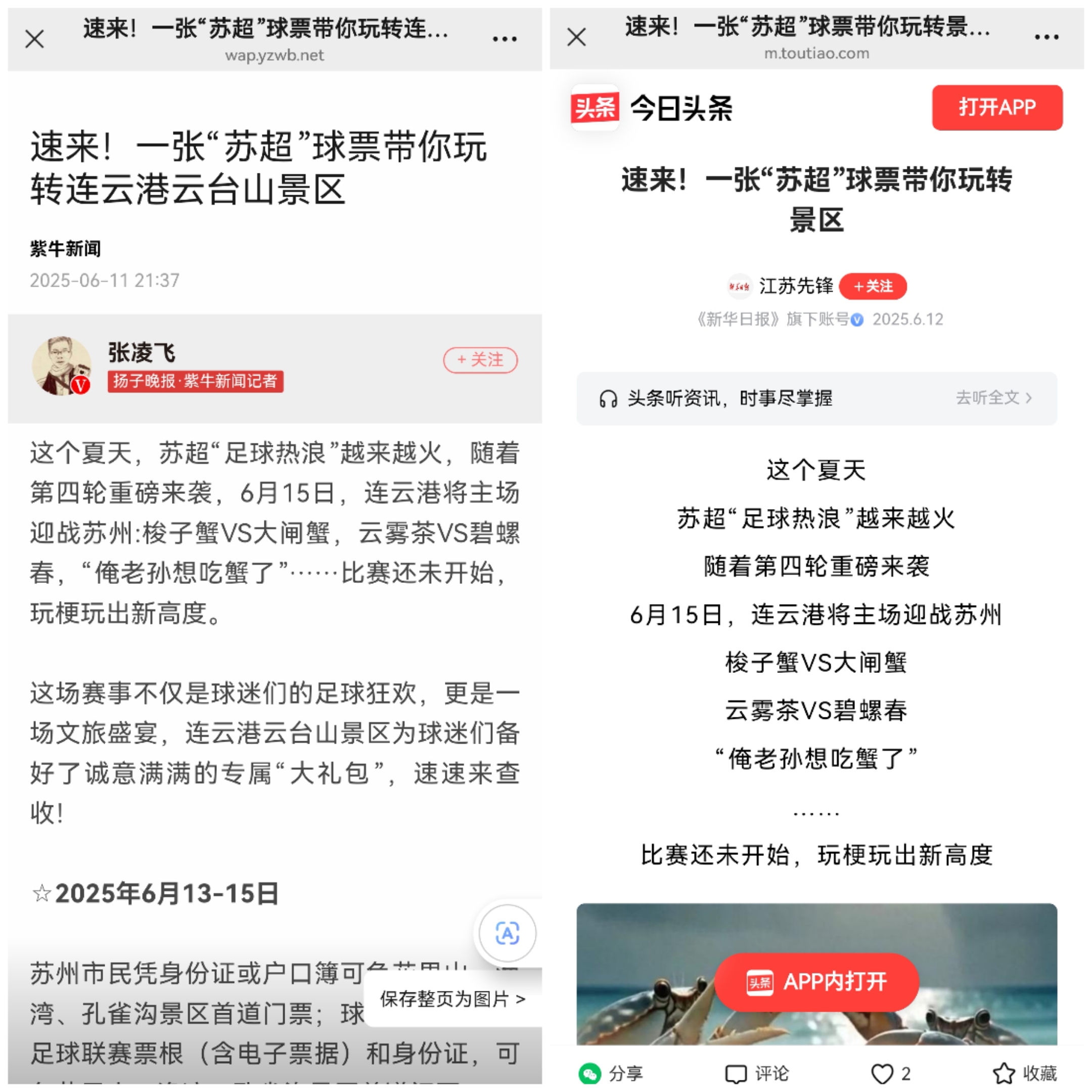 此外,交汇点、现代快报、紫牛新闻、中国江苏网、今日头条等主流媒体也纷纷聚焦景区“苏超”热,进一步扩大了景区影响力和美誉度。
