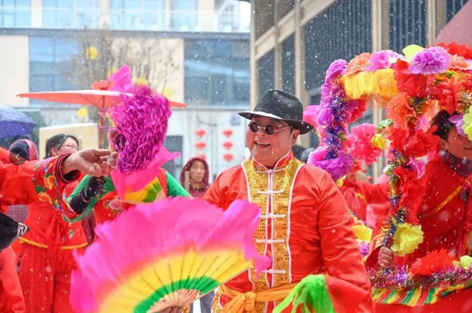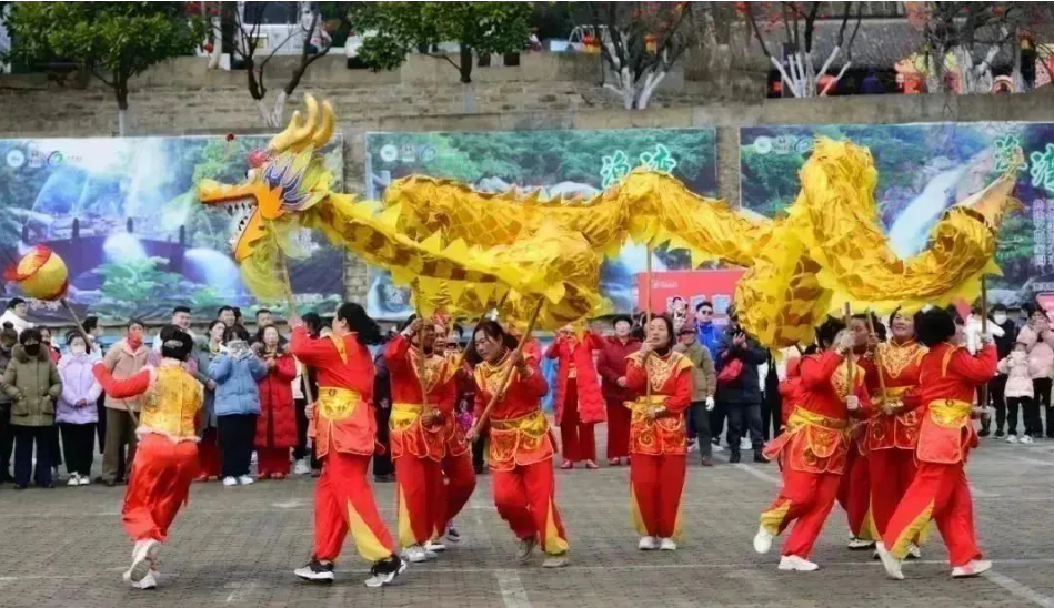 舞龙舞狮、划旱船、踩高跷等非遗民俗演出