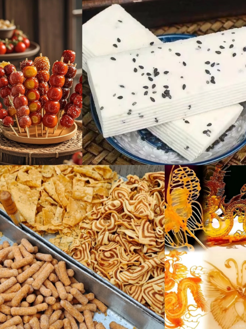 麦芽糖、糖画、冰糖葫芦、云片糕