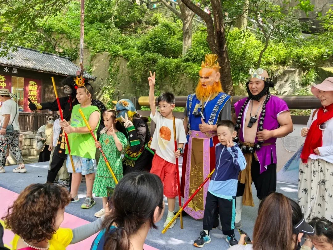 平日里的花果山景区,各类“西游人物”在玉女峰腾云驾雾,摇身一变成威风凛凛的“齐天大圣”、霸气侧漏的“牛魔王”,和游客玩得不亦乐乎,神还原《西游记》里的名场面,直接把游客从现实拽进奇幻世界,主打一个沉浸式穿越体验。