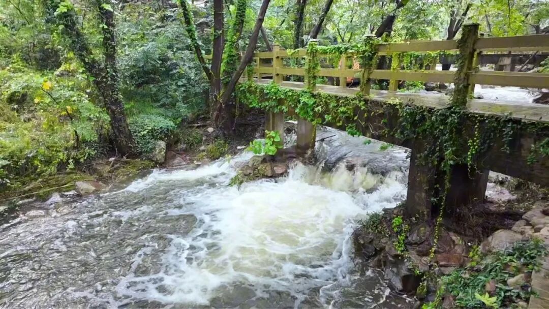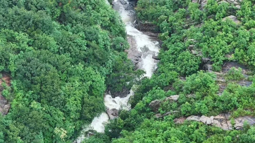 当然,在雨后渔湾,最动人的莫过于飞瀑流泉,雨水让溪流涨得满溢,清澈的水流撞在嶙峋的奇石上,溅起雪白的水花,又汇成蜿蜒的银带,顺着山谷奔涌而下。
